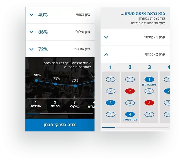 ערכת הספרים, האפליקציה והמערכת הלימוד החדשנית שלנו תביא אתכם מוכנים בצורה מיטבית לבחינה הפסיכומטרית.