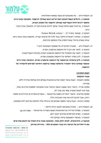 תשובה .2בריטניה פעם שלטה באזור שהפך להיות ארצות הברית .התשובה אינה נכונה