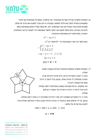 ‫‪ .16‬השאלה שלפנינו מכילה מערכת משוואות‪ .‬כפי שלמדנו‪ ,‬במערכת משוואות אנו תמיד‬