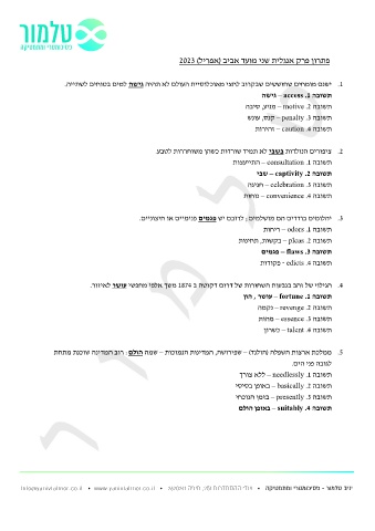 פתרון פרק אנגלית שני מועד אביב (אפריל) 2023