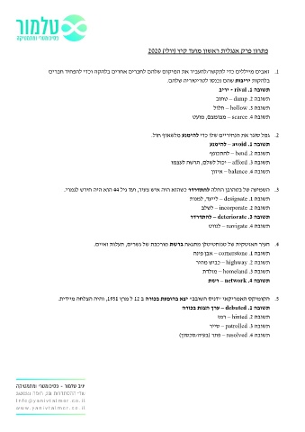 פתרון פרק אנגלית ראשון מועד קיץ (יולי) 2020