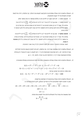 נתון כי סכום היקפי המלבנים גדול ב 6מהיקף המלבן ,ולכן נרשום משוואה זו: