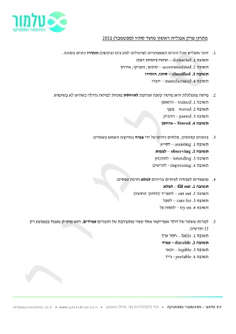 פתרון פרק אנגלית ראשון מועד סתיו (ספטמבר) 2021
