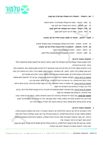 תשובה ( )3אינה נכונה :אם התגובות למסע הפרסום היו חיוביות ,היינו מצפים לעליה בתיירות .מכיוון