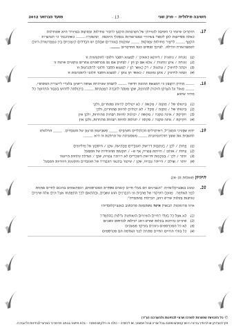 מועד פברואר 2012 - 13 - חשיבה מילולית -פרק שני