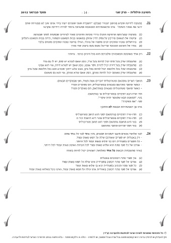 מועד פברואר 2012 - 14 - חשיבה מילולית -פרק שני