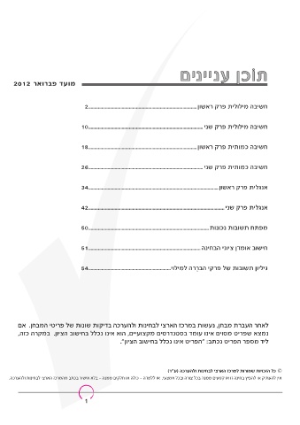 מועד פברואר 2012 תֹוכן עניינים