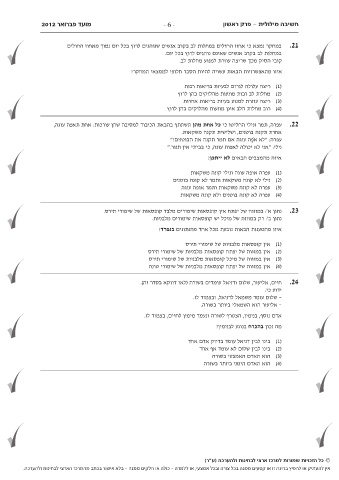 מועד פברואר 2012 חשיבה מילולית -פרק ראשון - 6 -