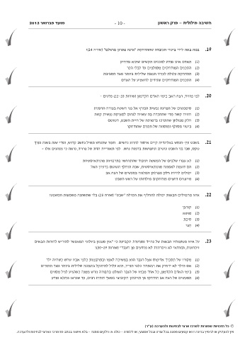אין להעתיק או להפיץ בחינה זו או קטעים ממנה בכל צורה ובכל אמצעי ,או ללמדה -כולה או חלקים ממנה -בלא אישור בכתב מהמרכז הארצי לבחינות ולהערכה.
