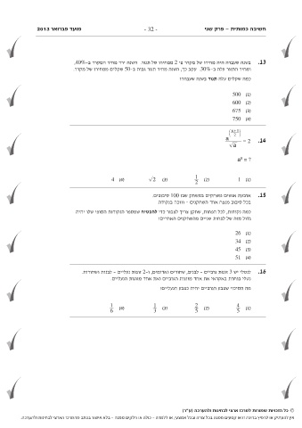 מועד פברואר 2013 - 32 - חשיבה כמותית -פרק שנ י