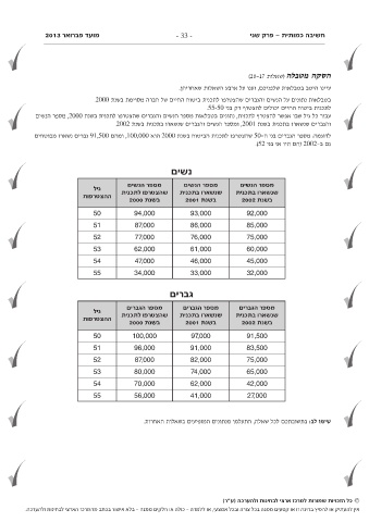 והגברים שנשארו בתכנית בשנת ,2001ומספר הנשים והגברים שנשארו בתכנית בשנת .2002