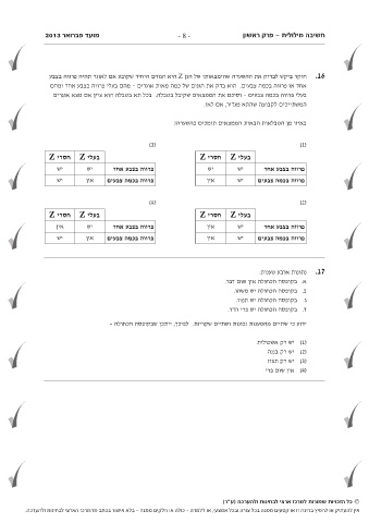 אין להעתיק או להפיץ בחינה זו או קטעים ממנה בכל צורה ובכל אמצעי ,או ללמדה -כולה או חלקים ממנה -בלא אישור בכתב מהמרכז הארצי לבחינות ולהערכה.