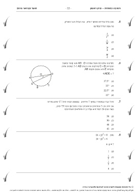 בסרטוט שלפניכם מעגל שמרכזו AD .Oהוא קוטר במעגל. . 6