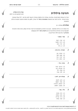 אין להעתיק או להפיץ בחינה זו או קטעים ממנה בכל צורה ובכל אמצעי ,או ללמדה -כולה או חלקים ממנה -בלא אישור בכתב מהמרכז הארצי לבחינות ולהערכה.