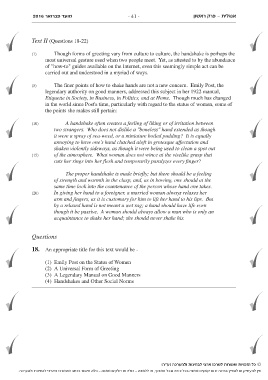 (1) Though forms of greeting vary from culture to culture, the handshake is perhaps the