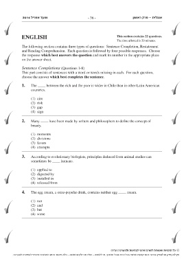 and Reading Comprehension. Each question is followed by four possible responses. Choose