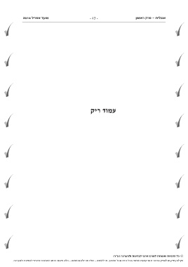 אין להעתיק או להפיץ בחינה זו או קטעים ממנה בכל צורה ובכל אמצעי ,או ללמדה -כולה או חלקים ממנה -בלא אישור בכתב מהמרכז הארצי לבחינות ולהערכה.