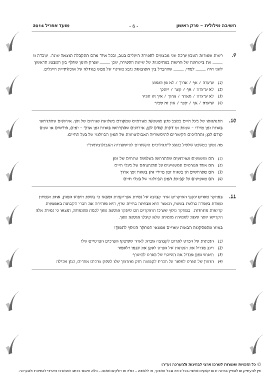 אין להעתיק או להפיץ בחינה זו או קטעים ממנה בכל צורה ובכל אמצעי ,או ללמדה -כולה או חלקים ממנה -בלא אישור בכתב מהמרכז הארצי לבחינות ולהערכה.