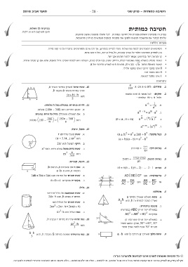 A hypoténuse CAA DF הוא ,h A בסיסوﺗהﺮS ששטח פירמידה נפח .16 b bb aa .9שטח מלבן שאורכו aורוחבו bהוא a · b