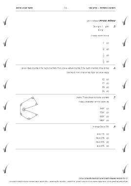 אין להעתיק או להפיץ בחינה זו או קטעים ממנה בכל צורה ובכל אמצעי ,או ללמדה -כולה או חלקים ממנה -בלא אישור בכתב מהמרכז הארצי לבחינות ולהערכה.