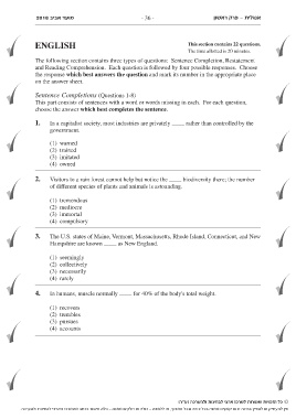 and Reading Comprehension. Each question is followed by four possible responses. Choose