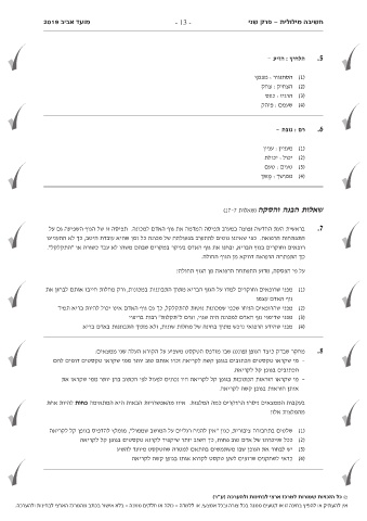 אין להעתיק או להפיץ בחינה זו או קטעים ממנה בכל צורה ובכל אמצעי ,או ללמדה -כולה או חלקים ממנה -בלא אישור בכתב מהמרכז הארצי לבחינות ולהערכה.