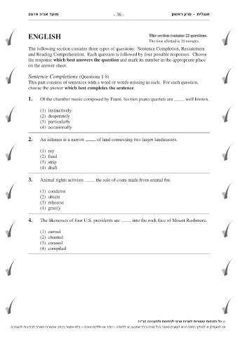 2019 מועד אביב - 36 - פרק ראשון- אנגלית