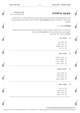 מועד אביב 2019 חשיבה מילולית -פרק ראשון - 4 -