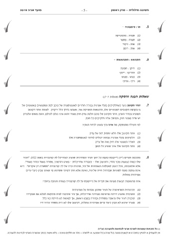 מועד אביב 2019 חשיבה מילולית -פרק ראשון - 5 -