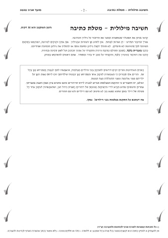 ִקראו בעיון את המטלה שבמסגרת ו ִכתבו את החיבור על גיליון הכתיבה.
