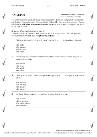 2020 מועד אביב - 36 - פרק ראשון- אנגלית