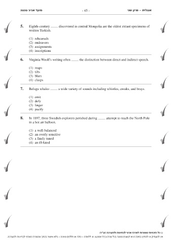 . בלא אישור בכתב מהמרכז הארצי לבחינות ולהערכה- כולה או חלקים ממנה- או ללמדה,אין להעתיק או להפיץ בחינה זו או קטעים ממנה בכל צורה ובכל אמצעי