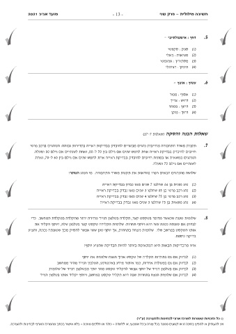 מועד אביב 2021 - 13 - חשיבה מילולית -פרק שני