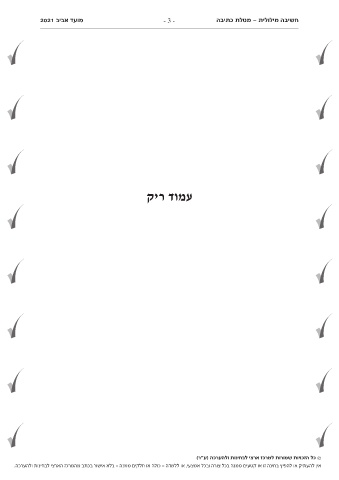 אין להעתיק או להפיץ בחינה זו או קטעים ממנה בכל צורה ובכל אמצעי ,או ללמדה -כולה או חלקים ממנה -בלא אישור בכתב מהמרכז הארצי לבחינות ולהערכה.
