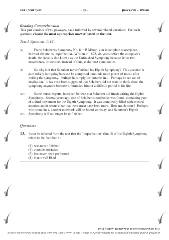 2021 מועד אביב - 39 - פרק ראשון- אנגלית