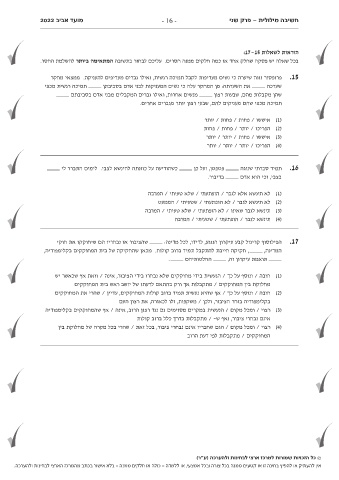 מועד אביב 2022 - 16 - חשיבה מילולית -פרק שני