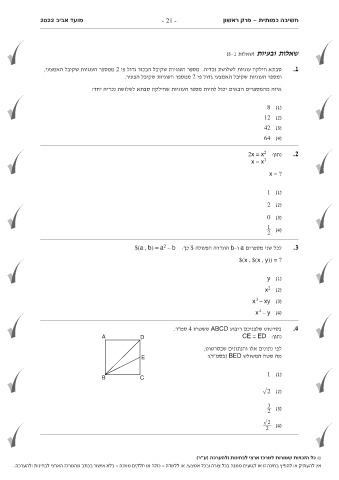 אין להעתיק או להפיץ בחינה זו או קטעים ממנה בכל צורה ובכל אמצעי ,או ללמדה -כולה או חלקים ממנה -בלא אישור בכתב מהמרכז הארצי לבחינות ולהערכה.