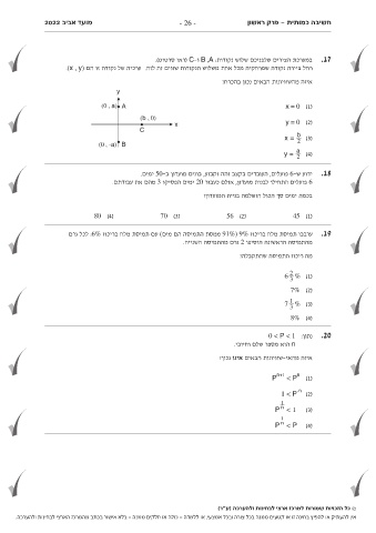 אין להעתיק או להפיץ בחינה זו או קטעים ממנה בכל צורה ובכל אמצעי ,או ללמדה -כולה או חלקים ממנה -בלא אישור בכתב מהמרכז הארצי לבחינות ולהערכה.