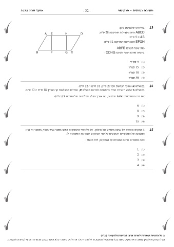 אין להעתיק או להפיץ בחינה זו או קטעים ממנה בכל צורה ובכל אמצעי ,או ללמדה -כולה או חלקים ממנה -בלא אישור בכתב מהמרכז הארצי לבחינות ולהערכה.