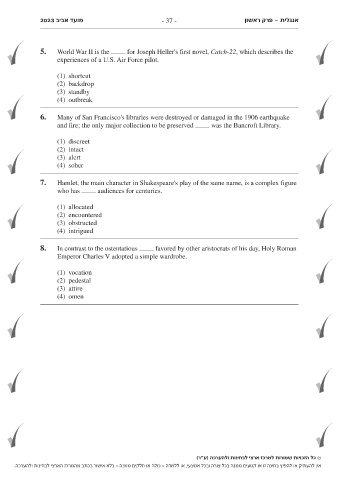 2023 מועד אביב - 37 - פרק ראשון- אנגלית