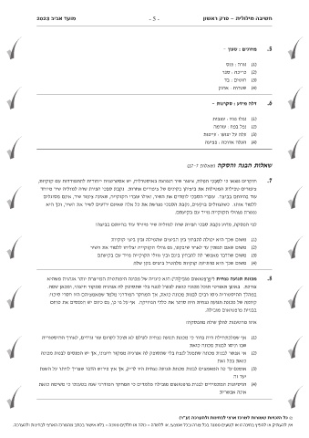 מועד אביב 2023 חשיבה מילולית -פרק ראשון - 5 -