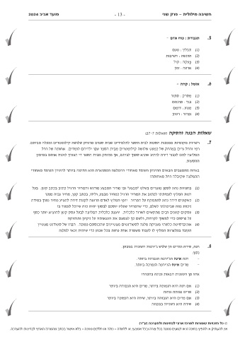 מועד אביב 2024 - 13 - חשיבה מילולית -פרק שני