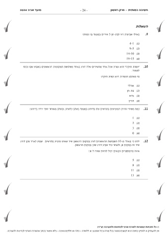 מועד אביב 2024 - 24 - חשיבה כמותית -פרק ראשון