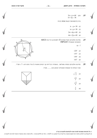 מועד אביב 2024 - 26 - חשיבה כמותית -פרק ראשון