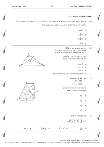 אין להעתיק או להפיץ בחינה זו או קטעים ממנה בכל צורה ובכל אמצעי ,או ללמדה -כולה או חלקים ממנה -בלא אישור בכתב מהמרכז הארצי לבחינות ולהערכה.