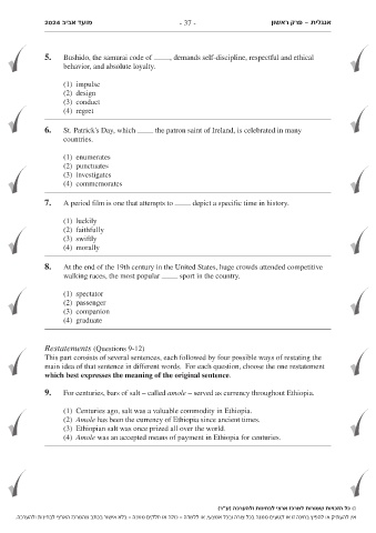 2024 מועד אביב - 37 - פרק ראשון- אנגלית