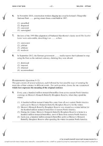 . בלא אישור בכתב מהמרכז הארצי לבחינות ולהערכה- כולה או חלקים ממנה- או ללמדה,אין להעתיק או להפיץ בחינה זו או קטעים ממנה בכל צורה ובכל אמצעי