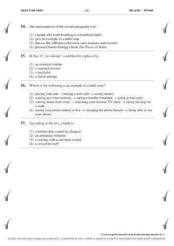 . בלא אישור בכתב מהמרכז הארצי לבחינות ולהערכה- כולה או חלקים ממנה- או ללמדה,אין להעתיק או להפיץ בחינה זו או קטעים ממנה בכל צורה ובכל אמצעי