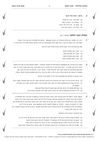 מועד אביב 2024 חשיבה מילולית -פרק ראשון - 5 -