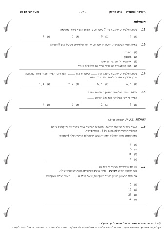 מועד יולי 2012 - 22 - חשיבה כמותית -פרק ראשו ן